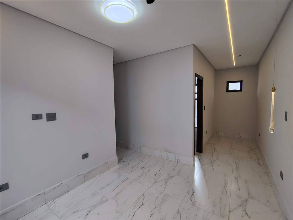 4 suítes sendo 1 com closet e hidromassagem, ampla sala com cozinha tipo americana, cozinha com pia e balcão em “L”, lavabo, garagem para 3 carros com portão basculante automático, entrada social com interfone com câmera, infra para ar condicionado nos